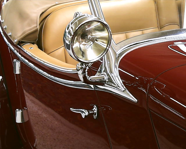 | Woodlite Headlights on a 1930 Ruxton, photographed at the Blackhawk Automotive Museum in Danville California |