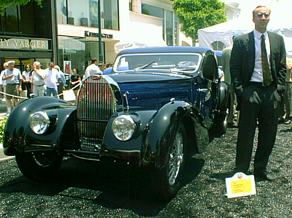 | Nicolas Cage and his Bugatti Atalante, seen at '99 Concours on Rodeo, Beverly Hills |