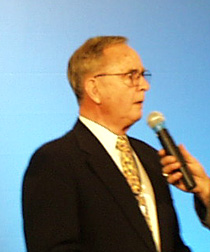 Phil Hill, Teilnehmer der Carrera Panamericana in '52, '53 and '54 auf Ferrari, im Interview auf der Bühne des Petersen Museum.