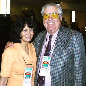 Carroll Shelby mit Gattin Cleo im Petersen Automobil Museum. Er nahm am Rennen in 1953 mit einem Austin-Healey teil. Als eines der vielen 'Opfer' der Carrera Panamericana, schied er mit einem gebrochen Arm aus dem Rennen aus.