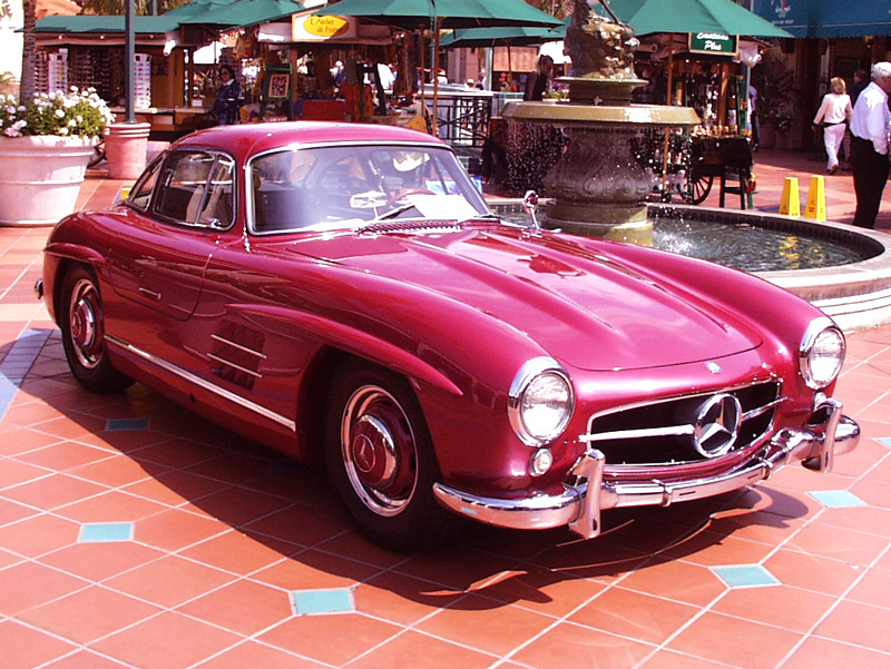 One of the Mercedes-Benz 300 SL Gullwing on display - in the rare Strawberry-Red Metallic color.