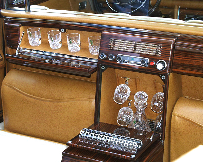 The rear compartment of the Mercedes-Benz 600 Landaulet. Refrigerated