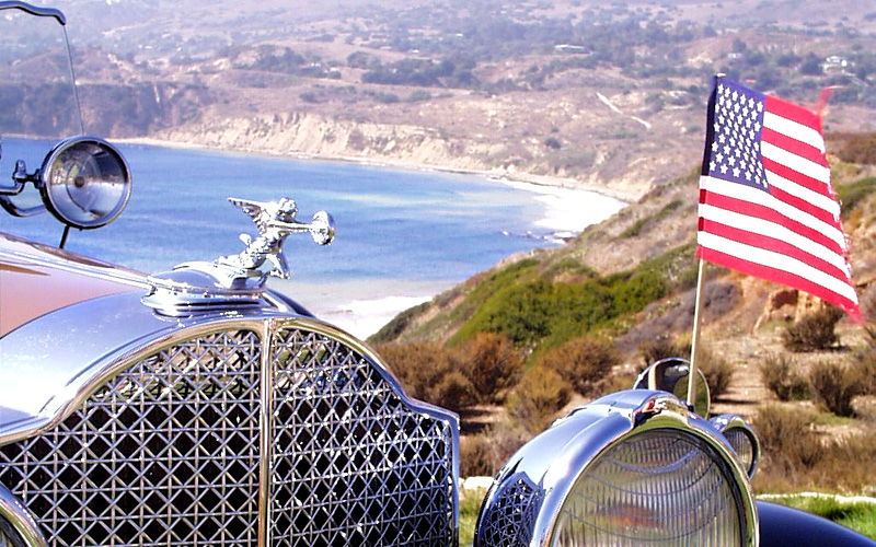 of cliffs and the Pacific Ocean to the more than 200 automobiles assembled.