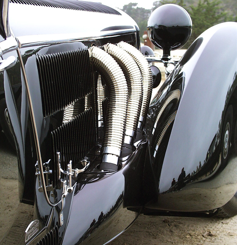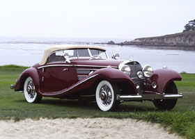 a 1902 40 hp Simplex -, 1934 Mercedes-Benz W 25, and 1937 Mercedes-Benz W 125 race cars, or the