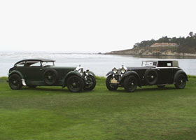 Two 1930 Bentley Speed Six Gurney Nutting Coupes, the one to the left was originally owned by Woolf Barnato - one of the famous 'Bentley Boys'. |